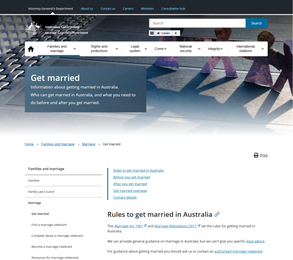 by the Attorney-General’s Department (Marriage Law and Celebrants Section, Canberra ACT).